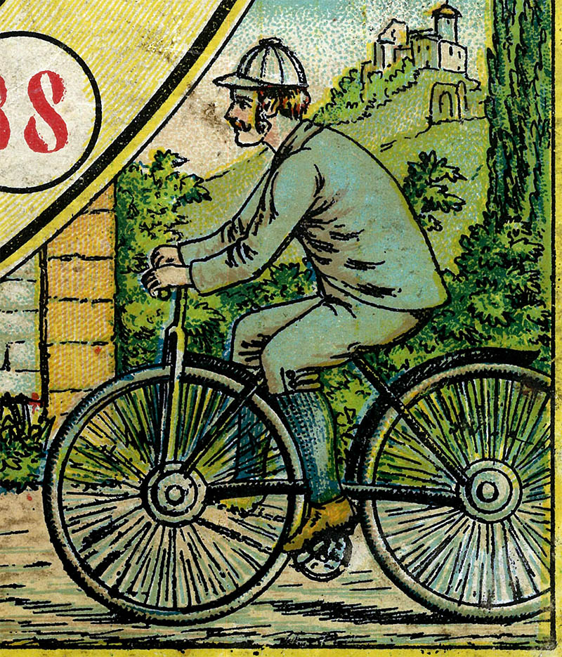 In this game we find a variety of front-wheel-drive bicycles which look quite primitive. In some cases I wonder if the artist depicts the bicycle correctly.
