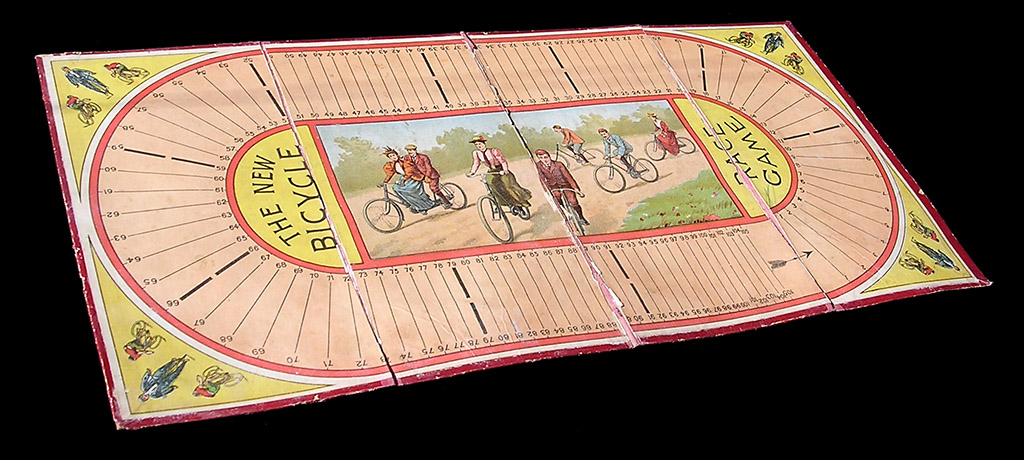Early unbranded English (well, at least I bought it in England) game. It might be a XIXth-century game or very early XXth century. Hard to tell, since I just have the board. No riders, no rules. Any piece of information is welcome.