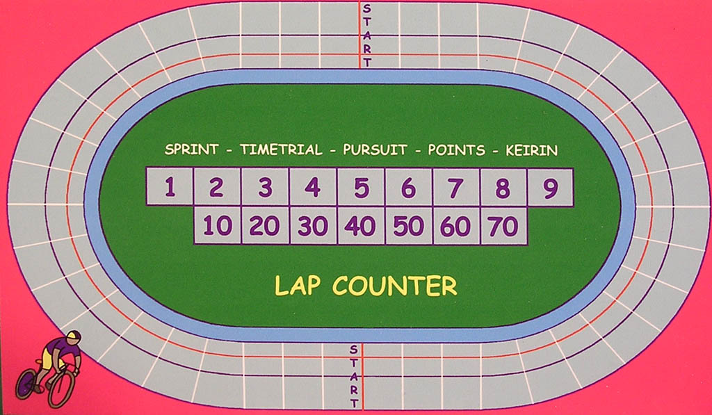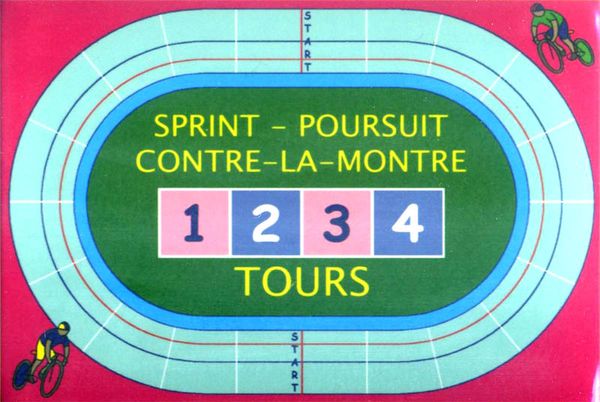 As with most track cycling games, you can play different types of races which, as you can see, are printed on the boards. While the smaller version only offers Sprint, Time Trial and Pursuit, the bigger game adds Points and Keirin races ,