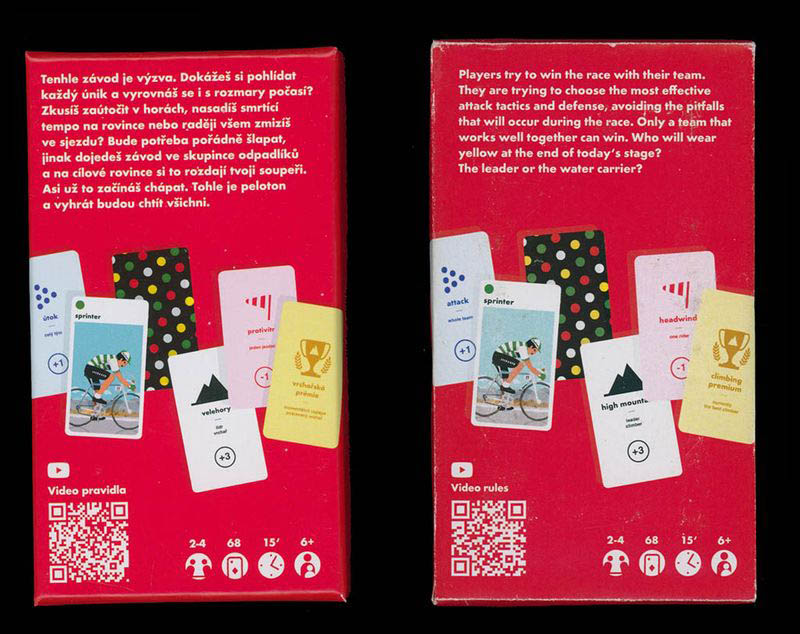A couple of years ago I was contacted by a Czech designer who had created such a game and wanted to send me a prototype so that I could test the rules. When I received it, I immediately fell in love with this little game. The only thing I did not like was the name of the game since, no matter how well the name does fit the game (which it does), there were already several cycling games called "Peloton", including another Czech game.