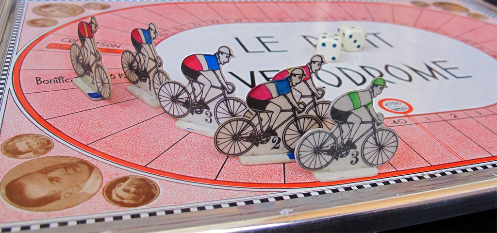 As for the rules, I can only talk about those of the Tour de France game, but we can assume that those of the velodrome games are fairly similar. The rules are very simple. Basically, you throw two dice and advance your rider accordingly, but the count is as follows: