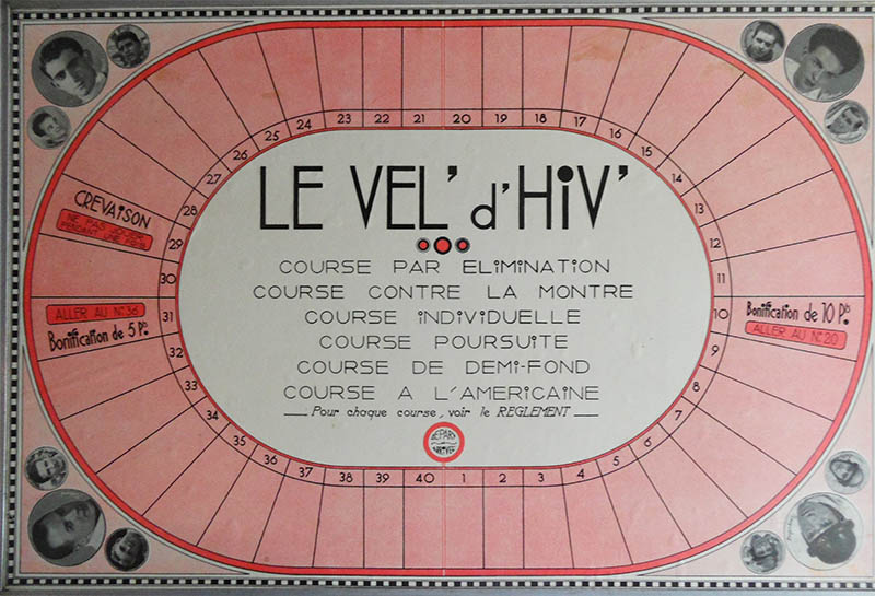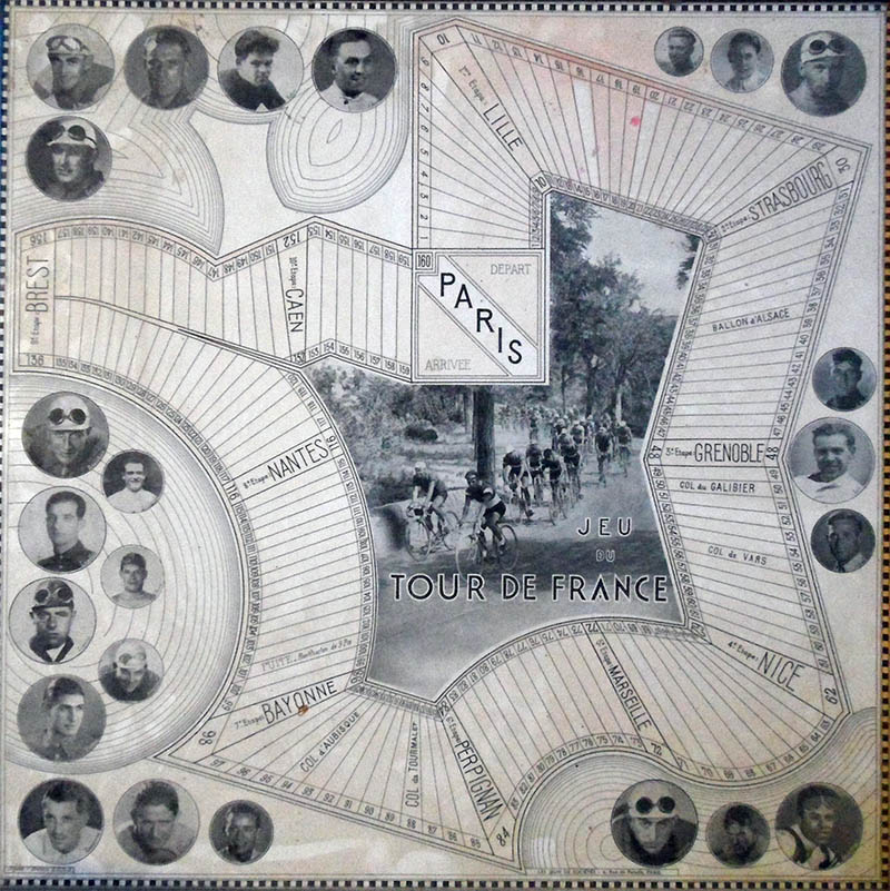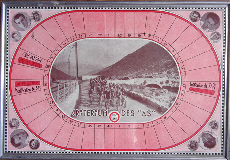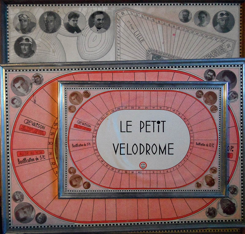 I will not use the Tour de France board to try to date Le Petit Vélodrome, as the riders featured are different, and I do not have a picture in which I could recognise them all. Suffice to say that the ones I do recognise are Tour de France riders from the 1930s. Among them is Federico Ezquerra, who also took part in the 1934 Tour, even leading the KOM classification for some stages, and who won a stage of the 1936 Tour with a Spanish Republican maillot.