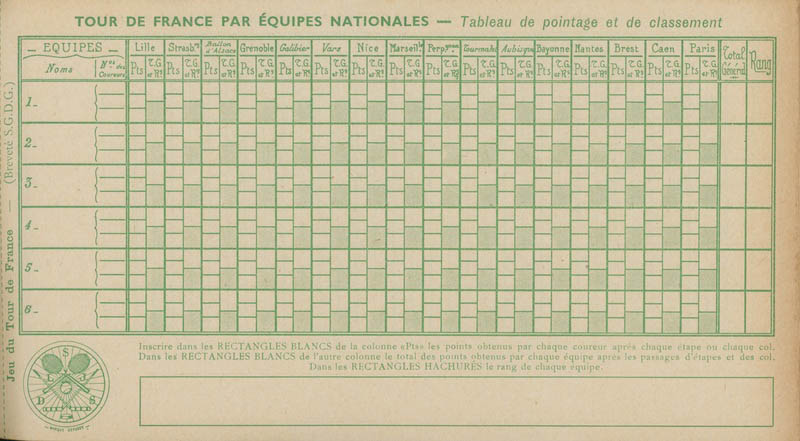 On the other hand, Didier has the rules for the Tour de France game, which also has six different races (most of them track races, and not so different from those included in the track game). Of these six games, we only have the scoring pad for two of them.
