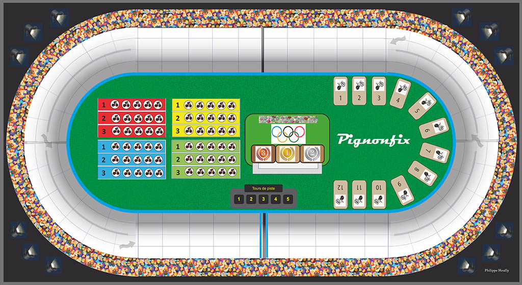 This said, I am proud to offer a new multi-purpose track cycling game as a free download (scroll down to find the links) for you all. Pignonfix (what a great name for a track cycling game!) has been created by Philippe Heully, from Paris, who suggested that the game be offered in time for the Paris 2024 Olympics. I immediately thought it was a fantastic idea. However, even though the game was mostly finished, some details have been changed as game testing progressed, and having such an unpostponable deadline meant that these changes had to be limited in time.