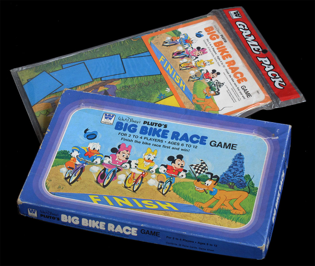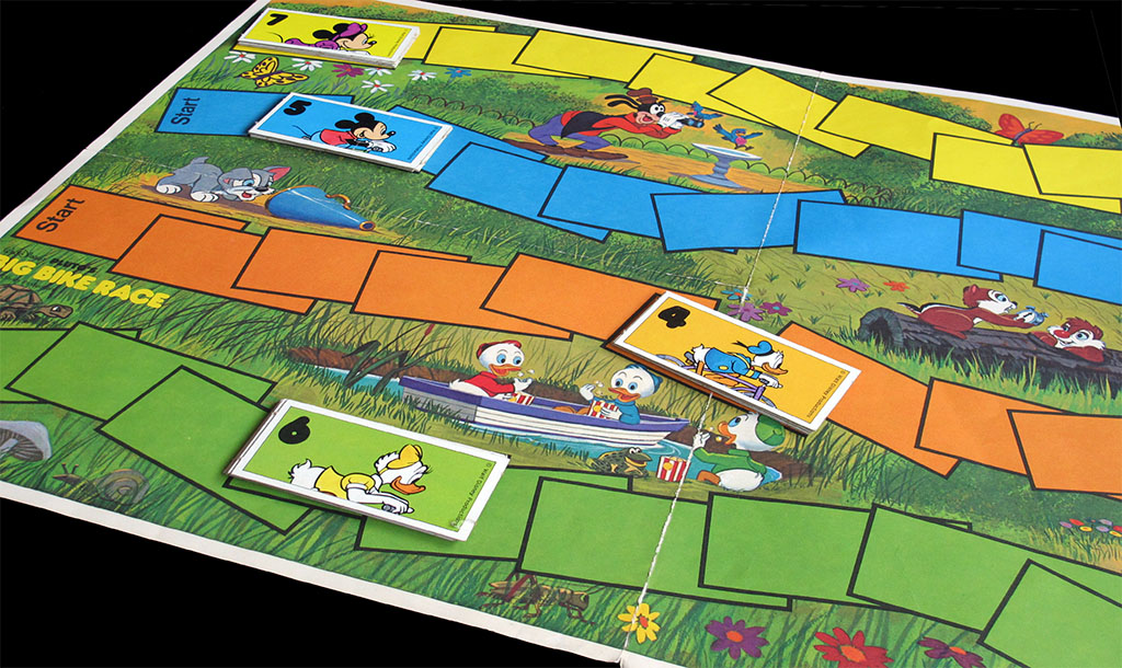 Here is a a different cycling game. As you can see, there are two versions, one of them marketed in a regular game box and another that comes in a a plastic bag containing the folded board and the cards. The contents of both versions are the same, the board being made of thin cardboard in in both cases.