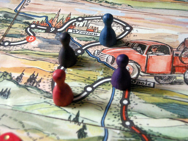 The race begins in Bratislava and ends in Warsaw (as did the 1953 edition of the race). It is divided in 12 stages. The game is played with 3 dice. The first rider to reach the even stages receives 5 points, and the second receives three points. For odd stages there are only 3 points awarded to the first rider to pass the city and one point for the second.