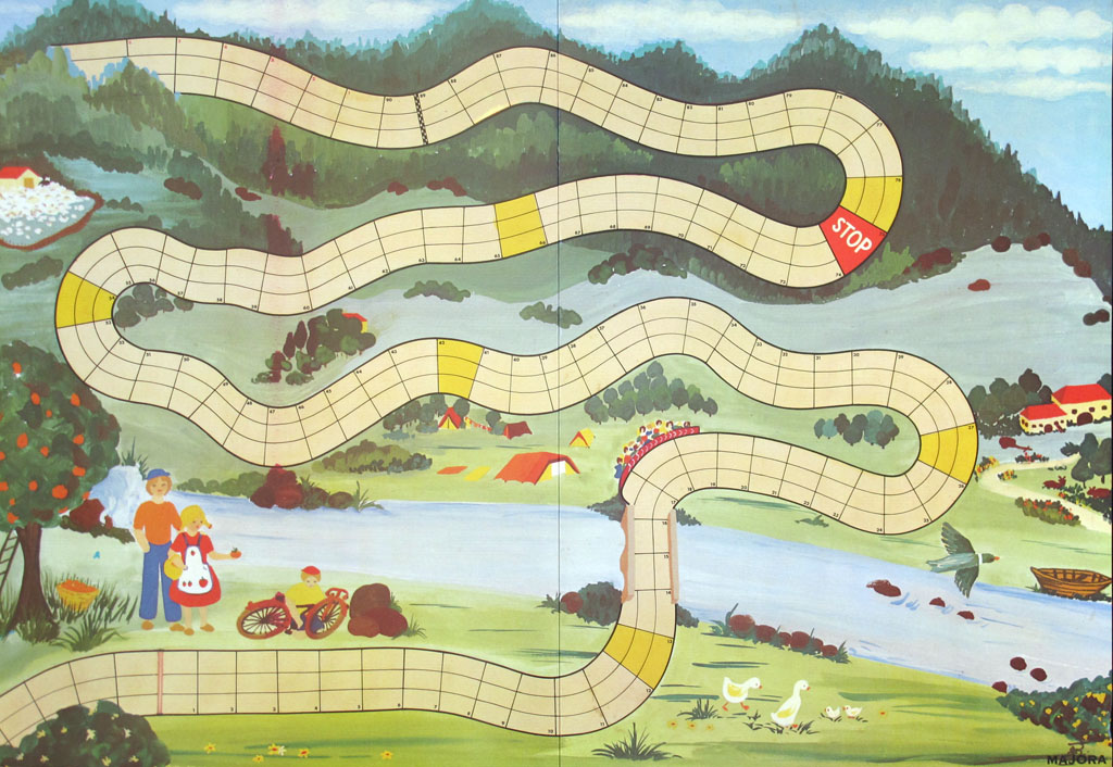 The game is unusual not only because it is portuguese, but because it represents an uphill race. I do not remember any other such game (the closest being Bajando el puerto, which represents a downhill race, though it is a much simpler game).