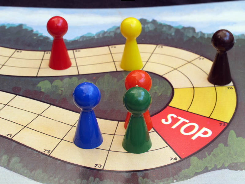 The road is three lanes wide (sometimes only two). Riders can only move forward or diagonally forward and cannot pass over other plriders. If the road is blocked, they lose the rest of the movement.