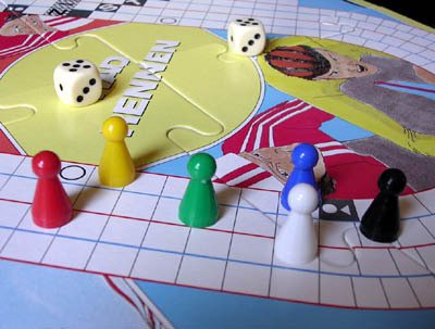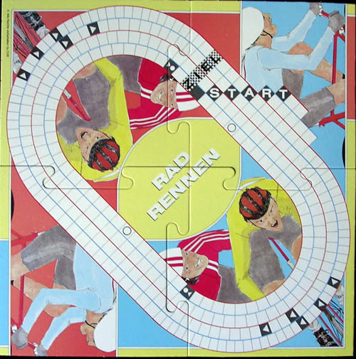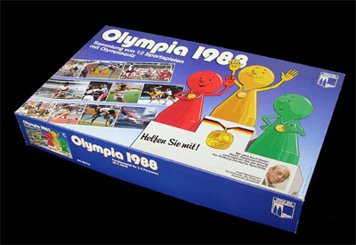 Simple uninteresting German game that represents a track race. Regensburg released it as part of the OLYMPIA 1988 box (along with 11 other sport games) and also as a stand-alone game. The Olympia version's board is not jigsawed.