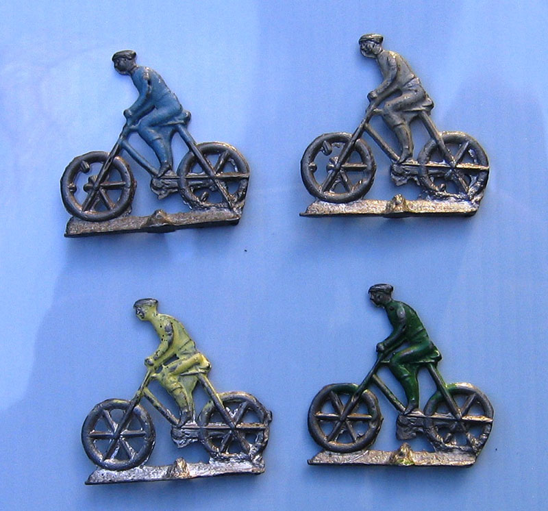 Inside the box I received the remains of three metal cyclists. I have not repaired them yet, but they are almost complete. I do not know if they belong to the game, since they do not look like velodrome riders in the first place. In fact, they look older than the rest of the game (even accounting for the game being from the 1910s).