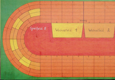 Frank Schaubrenner has sent me a couple of cycling games' prototypes which he felt belonged to my collection. One of them is a box of  "Ausgetrickst..." which contains, again, a cycling game. It is the same cycling game, just that this time there is only the track cycling part of the game (and it is called "Velodrom").