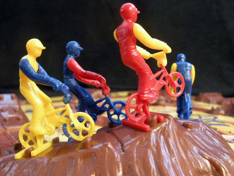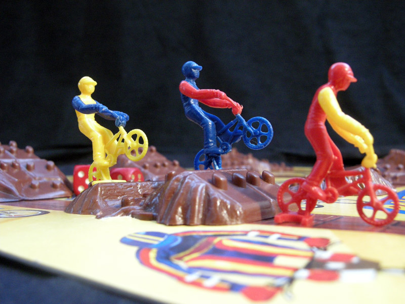 A beautiful BMX race game with an unusual 3D board. Meant for children aged 7 to 15, the game is worth a try just for its components. (The only other 3D board in the collection is El Juego de Salón Vuelta a Ciclista a España, but of course these games are not on the same league)