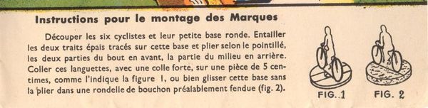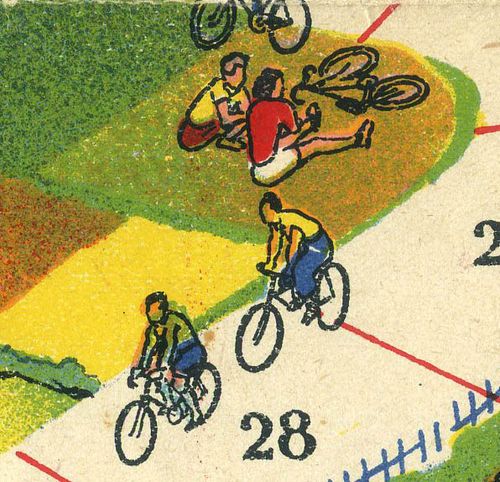 Promotional game of goose offered by the Chambre Syndicale du Cycle et du Motocycle. It is made of light cardboard and measures 54 x 36 cms. It is quite difficult to fins this game complete with the riders (as they have been generally cut) and even more with the original envelope. (By the way, I have one in such condition for trade).