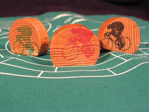 The cloath board does not help the (roughly made) riders' stability, but gives the game a distinctive look.