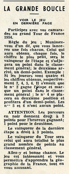 The game is divided in 24 stages, which roughly match the actual 1954 Tour de France stages, but not exactly. The game is not named after the Tour de France, though "la grande boucle" is obviously a synonimous expression.