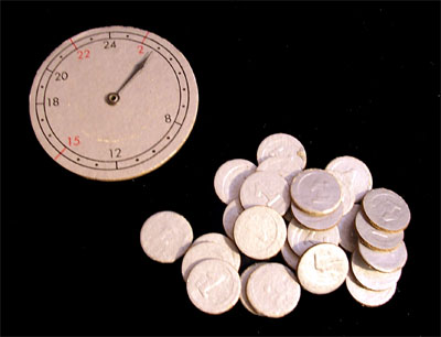 The game represents a six day race, so it features a clock to keep count of the time. Notice the red lines at 2, 15,and 22 hours, when special sprints take place.