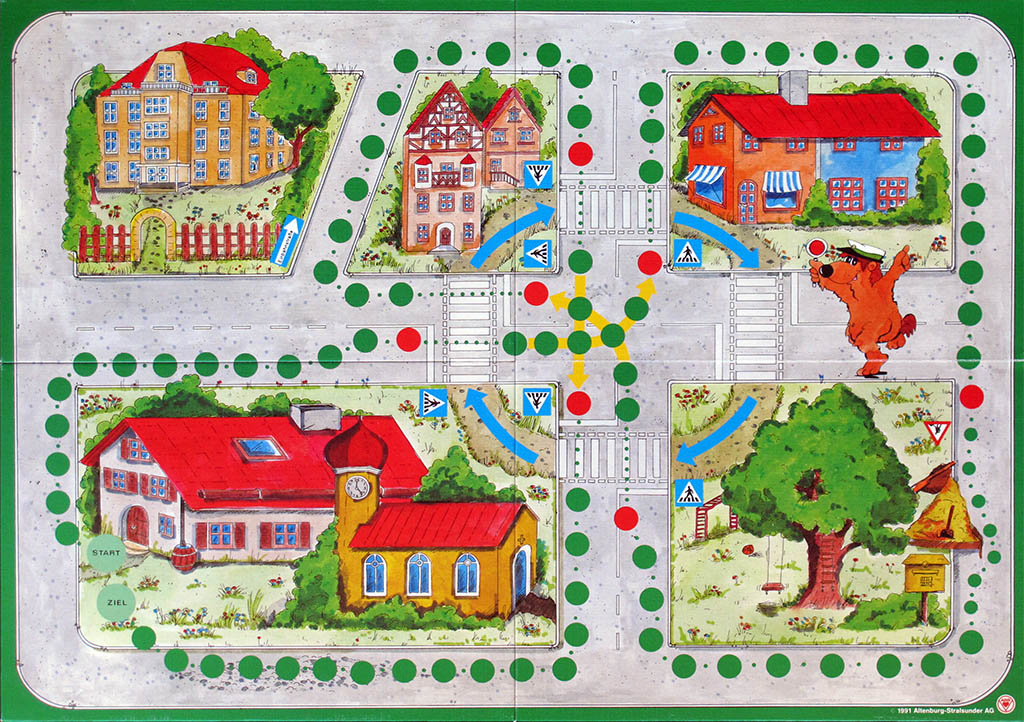This is a German kids' game about cycling security. It is not a game about cycle racing and therefore it is in the limit of what I should include in this website, but since I have a cyclo-touring games' section, I guess I can include it.