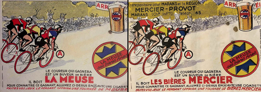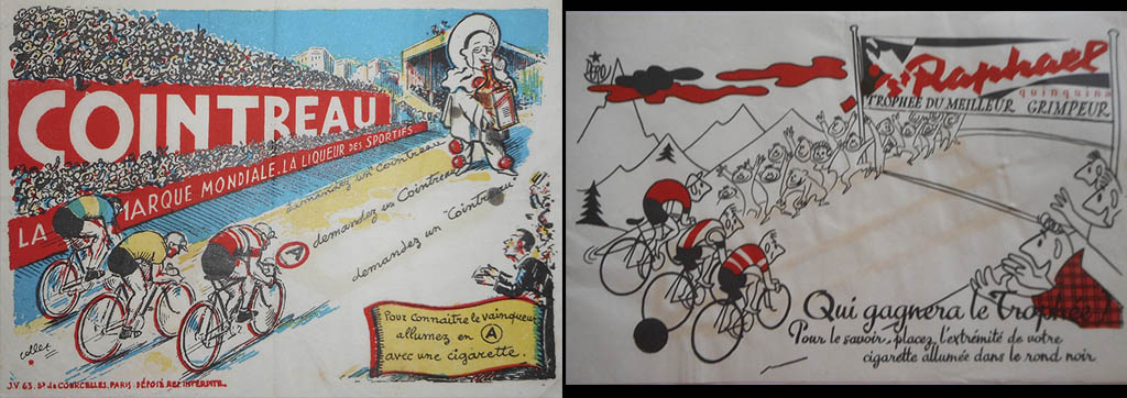 Similar games were not unusual in French cafés as promotion for various drinks. Occasionally, they were cycling games. Unfortunately, I have not been able to add any of these to my collection yet. The pictures you see were found on the net. Notice the cigarette burns: the games have been played, or at least someone tried to.