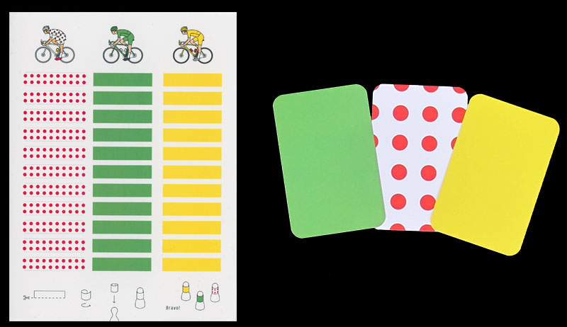 In this game, the movement of the cyclists is governed by dice, as could probably be expected from a game whose inception dates back to the 1970s, with all the advantages and disadvantages of dice when representing a cycling game (which I have discussed elsewhere). However, these are not normal dice. Players can choose between different dice (depending on the circumstances and the type of terrain), and they can also choose whether to roll a die to follow the cyclist in front of them, except, of course, if they are at the head of a group. So players are faced with tactical choices all the time.