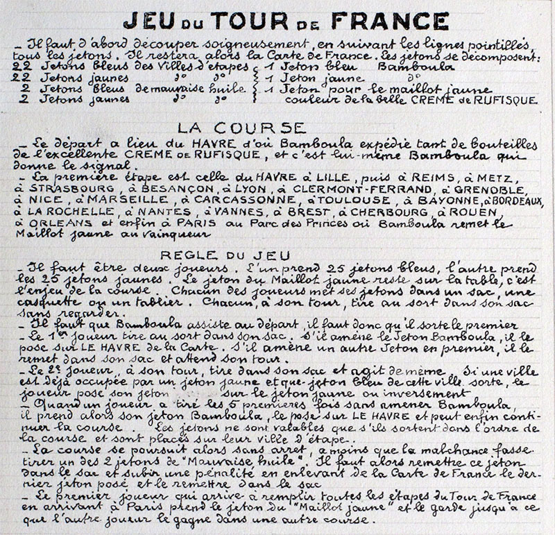This game was created by Félix Lochard (1874-1951), who had a shop in rue du Verneuil in Paris. It is a gouache painting on cardboard, 27 x 36.5 cms, with the rules handwritten on the back.