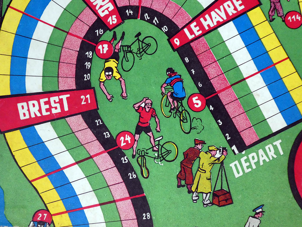 It can be generally assumed that if a game follows exactly the stages of a particular edition of a race, the game was published, or at least designed, in the year that race took place. Why would anyone design a game based on last year's race if it can be based on this year's? However, we must keep in mind that the process of designing, publishing, and distributing a game may take a few months, while the stages of the Tour might only have been announced a few weeks before the start of the race. While it is sure that a game based on the Tour of 1924 cannot have been designed before the stages of that year's Tour were known, it is only (highly) probable that the game was designed before the stages of the next tour were announced. There are many reasons why the release of a game can be delayed.