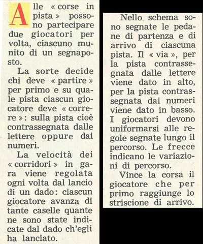 This magazine is quite small (it only measures 19 x 12.5 cms) and, as you can see in the picture above, the game is rather unplayable unless you do not mind seriously damaging it. Fortunately, you can find scans of the complete magazine online (check http://fumetti-segnalazioni.blogspot.com/) and print your own game.