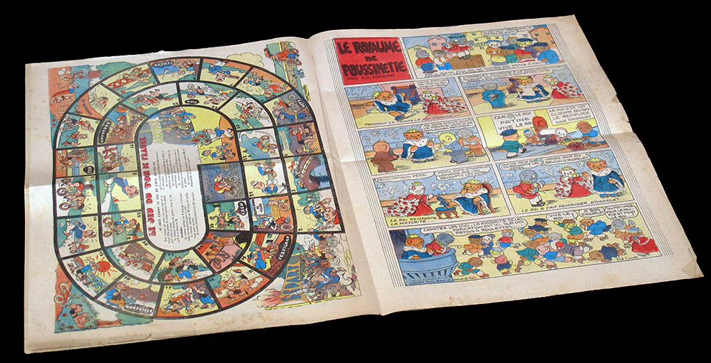 Here is a French game of goose included in a 1937 issue of Le Journal de Toto, of which I used to have only a copy pasted onto cardboard in quite poor condition. Didier Maria found the origin of this game (thanks again!), but it still proved a hard one to find until very recently. Finally, here we have it.