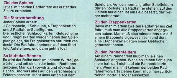 "Tour de Duck" was originally featured in the German Micky Maus magazine, divided in two parts (issues 42 and 43 of the year 1982). It's subtitle (Das tolle Radrennspiel) means "the fantastic cycling game" (thanks, Siegfried, for the precision with the translation).