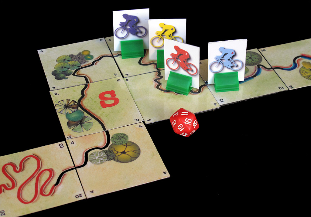 Of course, the question which arises with these game mechanics is what to do with the unused points. I mean, if your rider faces a succession of squares marked "4" and you roll, say, 16, should you advance 4 squares, or should you simple move to the first one and lose the rest of the roll (or maybe gain some energy points, or some other alternative advantage). In this game, Ben's decision has been to move forward the full four squares. This is an intuitive rule, of course, but one which , IMHO, brings the game closer to the roll-and-move type. However, do not understand this as an objection, but simply as a technical comment.