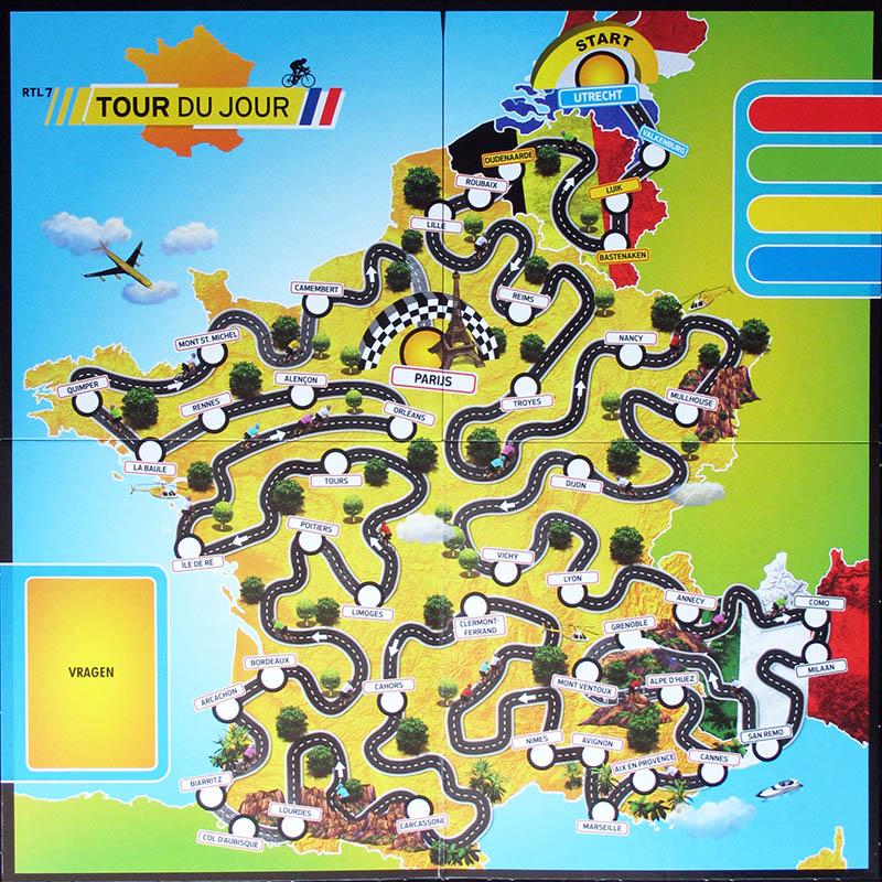 As you see, the is a board depicts a Tour de France starting in Utrecht, like the 2015 edition did, but it does not follow, as one could expect, the stages of that Tour.