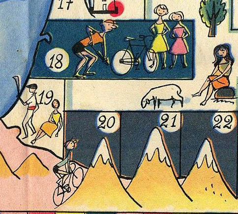 The fever for the Tour was so hot in France during the 50s that even girl's magazines like "La Semaine de Suzette" offered cycling games.