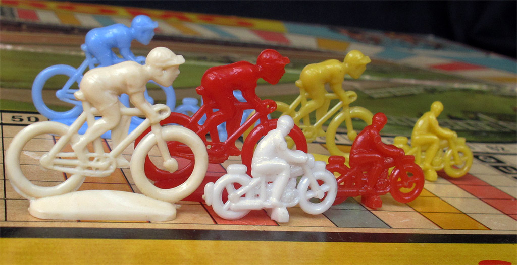 If the cyclists are quite small, the motorcycles are even smaller. They measure just 26 mm. Of course, they look quite weird. By the way, there are two motorcycles missing in my copy of the game. I cannot play the paced race with fife or six players...