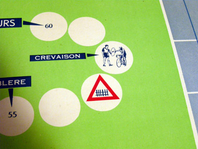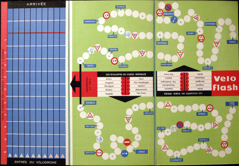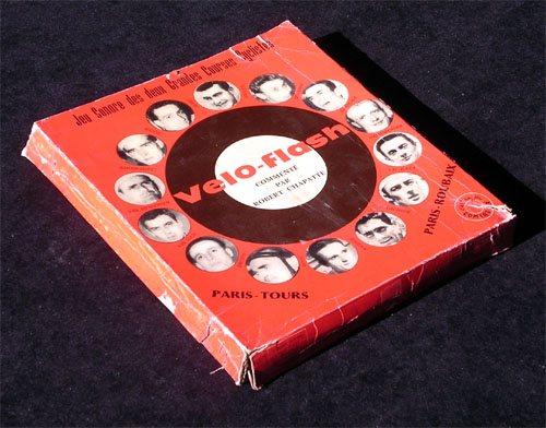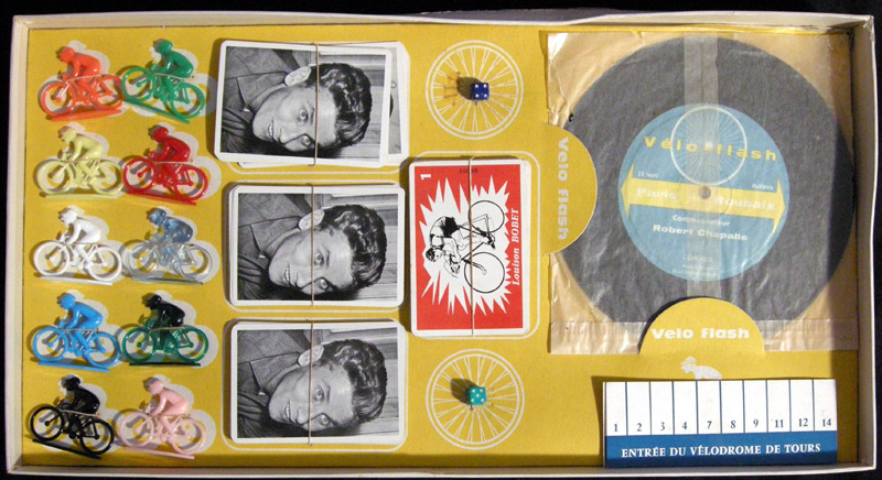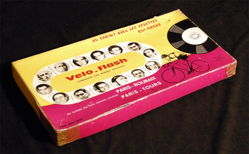 "Jeu Sonore des deux grandes courses cyclistes. Commenté par Robert Chapatte. Paris-Tours, Paris-Roubaix". This one includes an aleatory record (see below), which is enough to make it one of my fetishes, even better than Les 45 Tours de France .