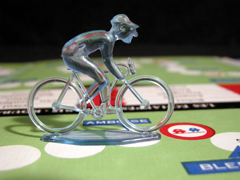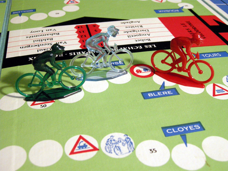 The game also featured collectible cards for the 14 cyclists. There were three cards for each rider, and they were supposed to be given as a prize to the player who won the game with that particular rider.