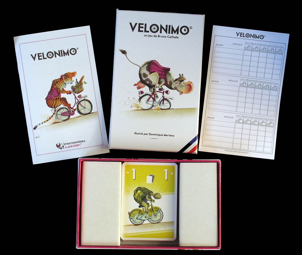 Here is a cycling-themed card game by French award-winning game designer Bruno Cathala. It is a shedding type card game, that is, a game in which the player's objective is to empty one's hand of all cards before all other players. The "theme" of this game is a fight for the King Of the Mountains jersey of a cycling race, which makes it quite special among cycling games, although the relation between the theme and the mechanics of the game is quite faint in some aspects, and the (otherwise gorgeous) illustrations by Dominique Mertens are not meant to tighten it.I have read somewhere this if this game been German instead of French it would probably have been published with no theme at all. I do not agree with that. To me, it is a cycling game indeed. But then, I see cycling games everywhere... ;-)