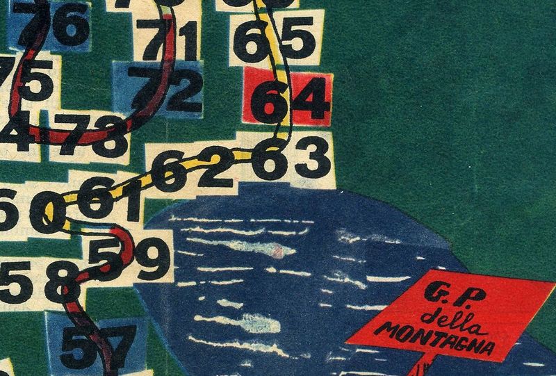 Giro d'Italia-themed game of goose included with Vera Vita (year XX, nš 29, may 3rd, 1964). Vera Vita ("True Life") was a weekly youth's magazine issued by the Jesuits, with religious content on almost every page, as you can guess by the front page. (Compared to it, Azzione catolica's Il Vittorioso was quite mild).