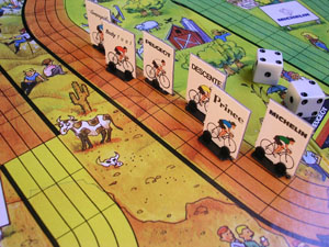 American game, a copy of "Maillot Jaune (Le jeu de Bernard Hinault)", which, by the way, is not one of my favourites. This is the only game I know to include female riders. Though the game is supposed to be for 2 to 6 players, twelve riders are included, six men and six women.