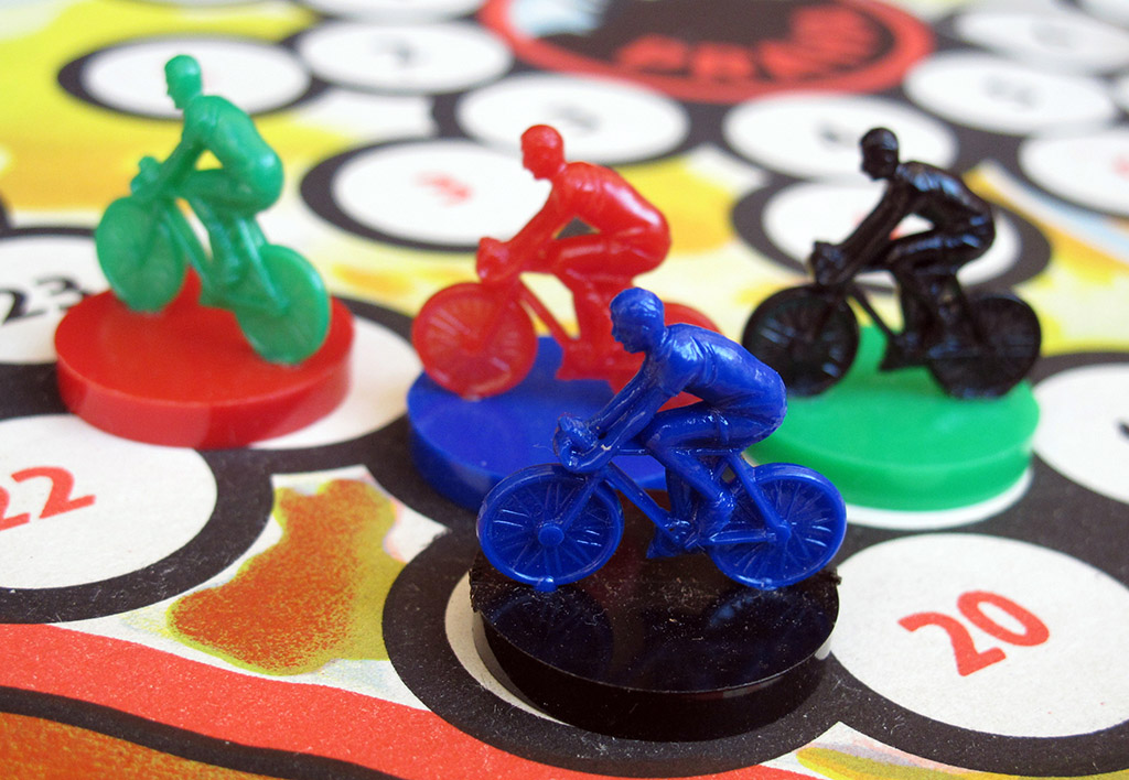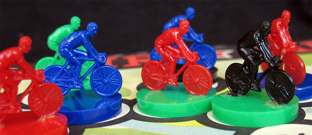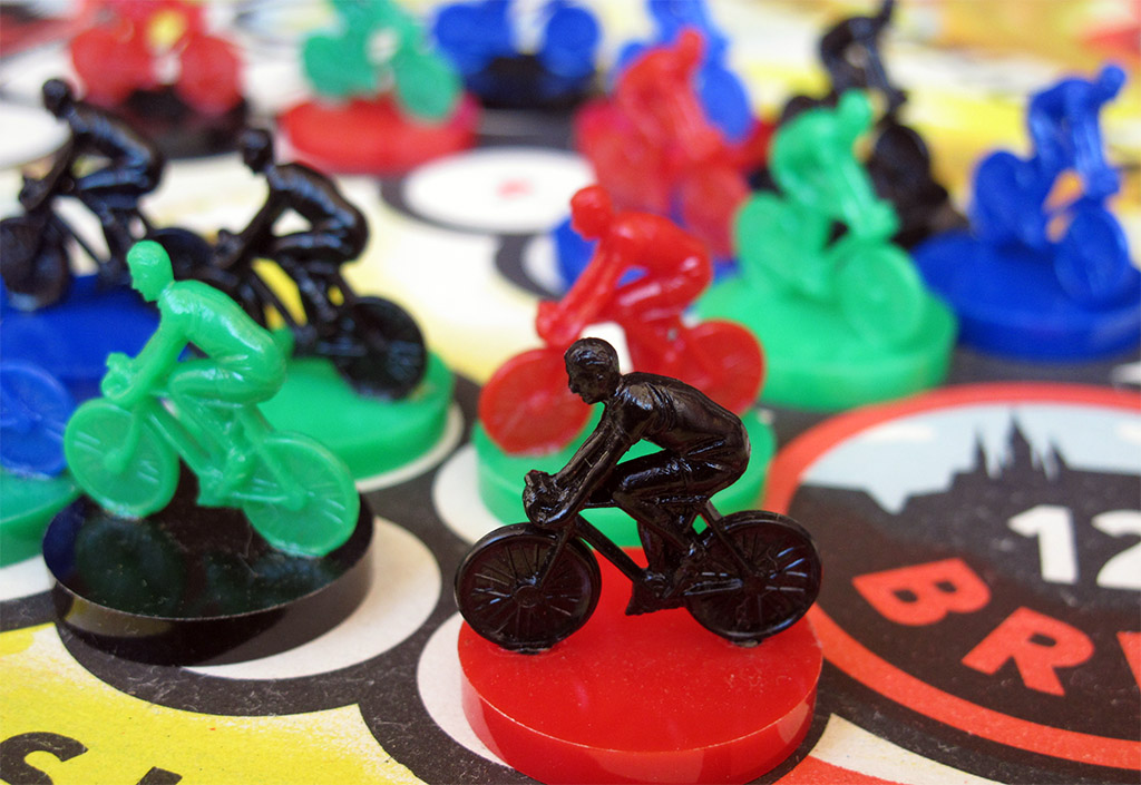 There is a previous version of the game, from 1955, in which the riders were not there yet. Instead of riders there were circular pieces as you can see in the picture above (found on the internet, published with permission - thanks Mike!).