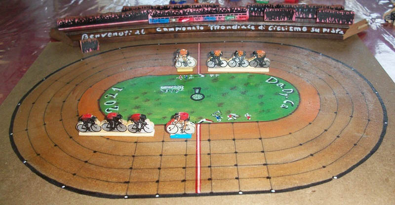 Non-velodrome-shaped board by Dale Addy (picture taken from BoardGameGeek)