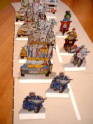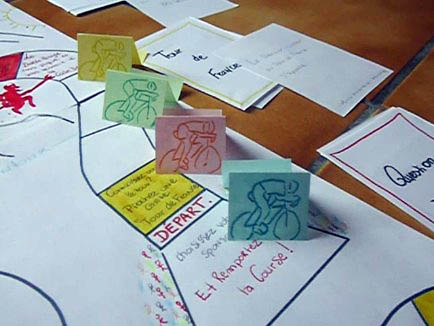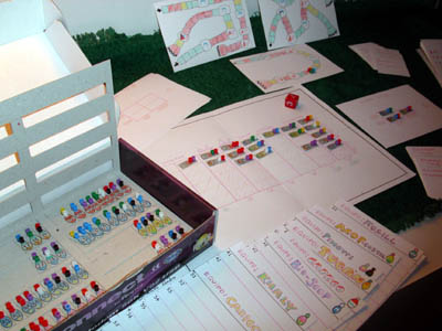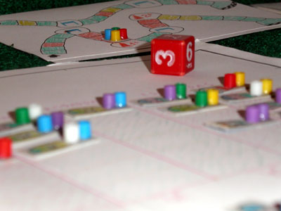 Baroudeur is an abandonned project form my friend Yann (from Paris). Baroudeur, actually, was an unfinished but playable set of rules to be played in almost any board. (even in a game-of-goose's board). However, Yann changed his mind and devoted his energies to his fantastic PBEM Tour de France game (http://fr.groups.yahoo.com/group/jeutdf/).I am not really sure if Yann wants his rules posted here, so I keep them to myself for the moment :-(