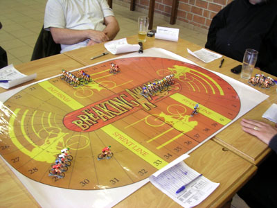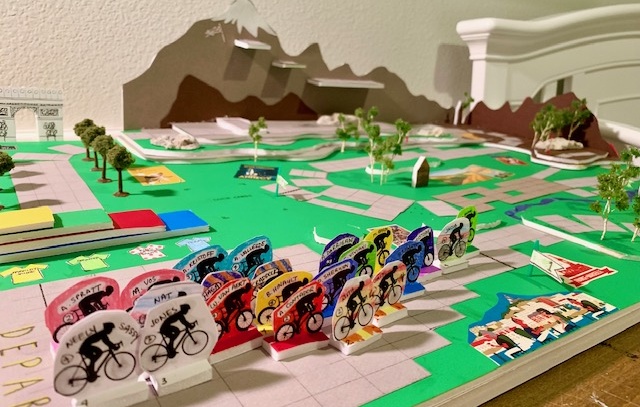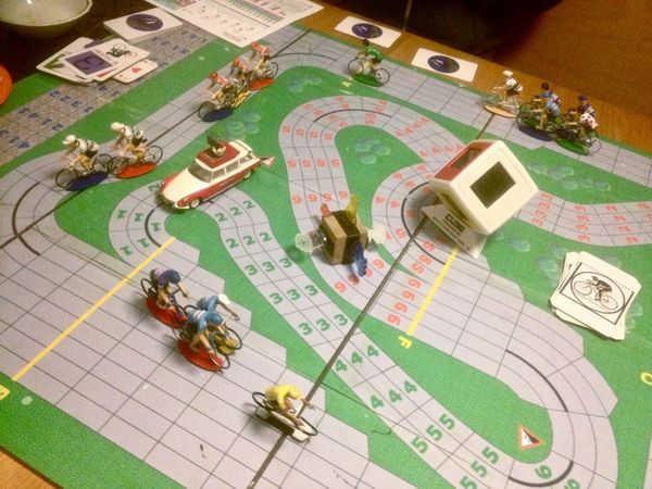 Not really a game but an idea from the Dutch online magazine SPELMAGAZIJN to play the different stages of a race with different games. If my Dutch does not betray me, the mountain stages were played with HOMAS TOUR, the flat stages with DER AUSREISSER and the time trial with some computer game. A nice idea!