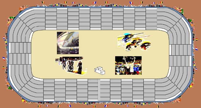 This game has been in my head for some time now and I think it’s worth a playtesting. It is very loosely based on Sprint Cycling. When I was young this always struck me as a daft name because they don’t (sprint, that is) at least not until the final 200 metres or so. The bulk of the contest is taken up by an elaborate battle of wits in an attempt to hang behind the opposing cyclist until the last possible moment.
