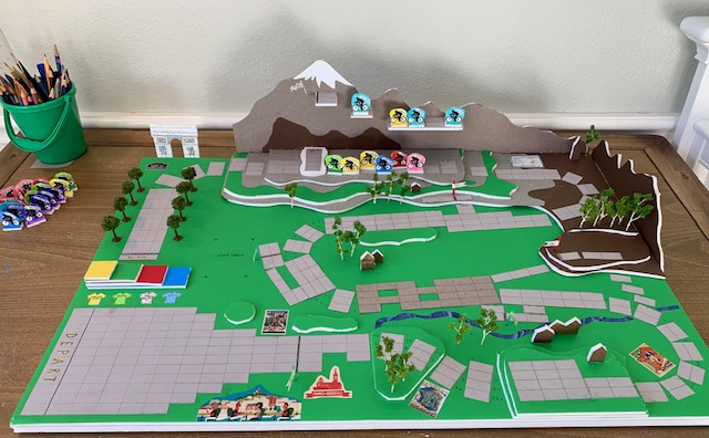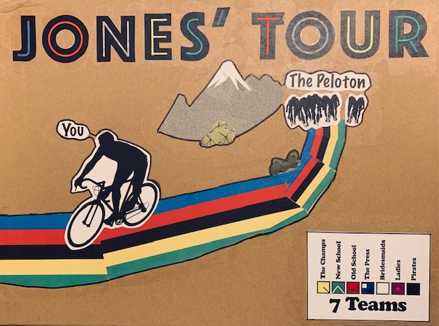 Written in October 2020:"Ventoux" is a cycle board game of strategy and chance. The race covers three distinct, varying terrains each of which favours different riders’ abilities. To win you need to get all your team across the finish line of the multi terrain stage event finishing on the summit of Mont Ventoux. All riders count. Riders are placed and team with lowest aggregate placing wins. David Sachs has been working on this game, on and off for quite a while. The rules are promising but not definitive yet. The design hasn’t made much progress either, but David tells me he sees it "as a picture board dominated by Mt Ventoux with some colourful Provençal sunflowers for the flat section".