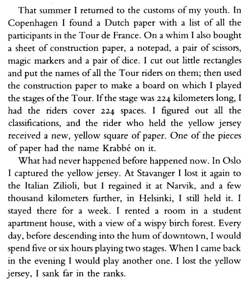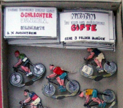 Tim Krabbé (author of "The Rider") has been kind enough to send me a text he wrote back in 1987 for Elsevier Weekblad. The text is called TOURS and recalls the memories of some adults who used to play cycling games in their childhood. Some of them played their own board games (like Tim Krabbé himself, see "The Rider" game), others played dexterity games. Since the text is in Dutch (and although online translators do wonders these days), it will take a while for me to post it here :-(