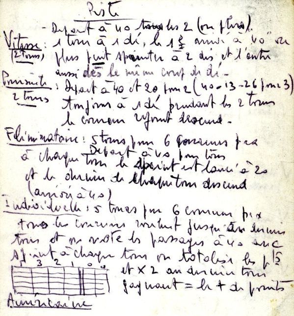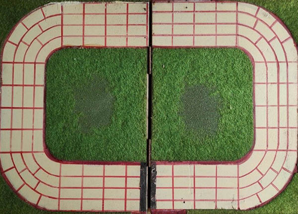 This game was created around 1950 by Robert Bidault, from Bayeux (France). Unfortunately the rules have been lost. According to his son Franck, who sent me these pictures, the game must have been similar to Le Jeu du Veldiv. I would not be so sure. This track has 60 squares, while HB's game has just 48. Of course you can play with HB's rules on this board, but then you can play almost any (simple) rules on any board. In this case, we will probably never know.