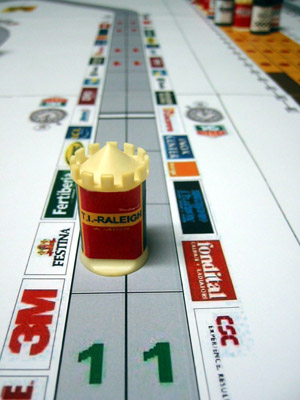 A) Colourful 120 x 80 cm wooden track offered on eBay in 2010 as a multi-purpose board (that means, with no particular rules). It was said to weight almost 5 kg (!). All I can add is that the seller was French.
