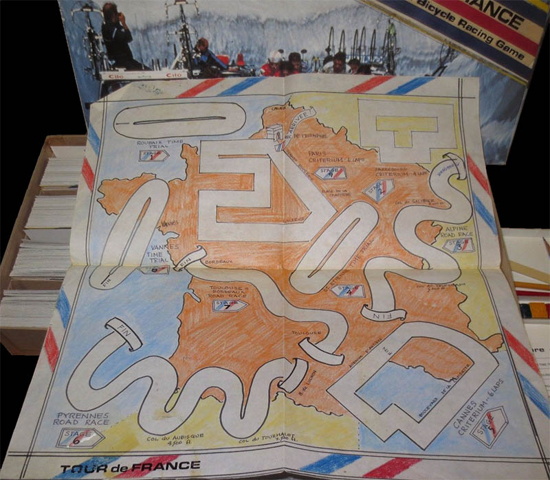 On a private email, he added: "Each stage was broken down into a number of turns, that could be flat, sprint, high mountains, or lesser mountains, then you had the peleton working at a particular rate of speed, breakaways, cyclists falling off the back, etc. It had a fairly realistic feel to it -- and hey, I won the race! -- and a cool feature was you could slip the yellow jersey on the cyclist's back (these were paper cyclists printed out on a desktop -- nothing fancy) -- but the game was pretty good, sorry not to see it make it into production."
