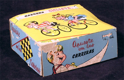 Cute Spanish toy. Quite small, actually (diameter: 11 cm). For those of you who don't understand Spanish, "apueste en las carreras" means "bet on the races". We are not supposed to teach children these things, are we?