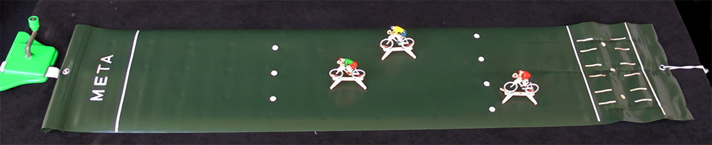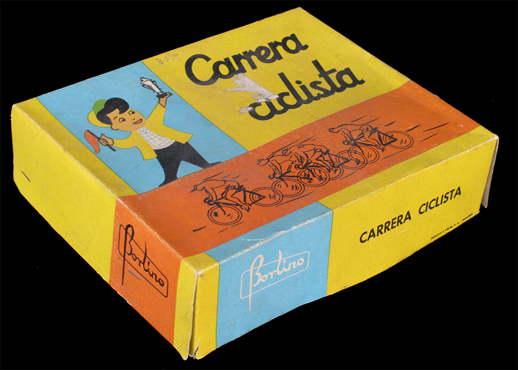 Nice Spanish mechanical cycling game that uses the "Escalado" system to move the riders along a plastic track. It was made in Zaragoza.