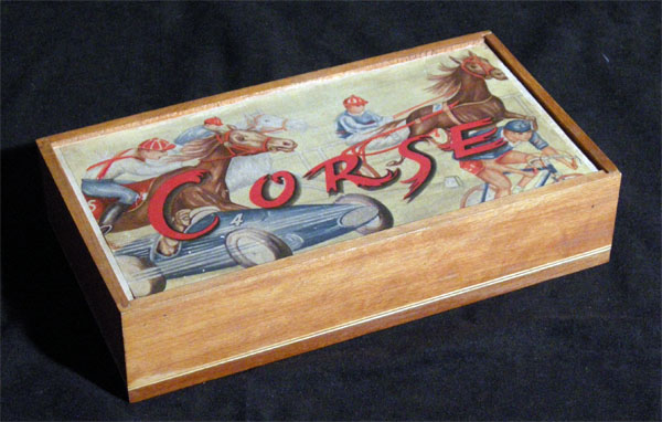 Some years later I was lucky enough to find some metal Italian riders that, though not the original riders included in this box (which were made of plastic) are perfectly suitable for this game. They surely belong to a similar game.